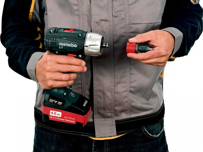 Metabo BS 18 LT Quick 2x4.0 А.ч. мощный шуруповёрт 18В с системой быстрой замены патронов. Дополнительно в комплекте быстросменный держатель инструментальных насадок.