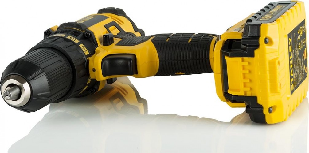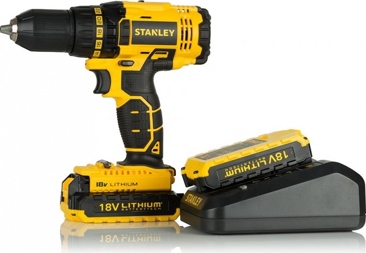 Ударная дрель-шуруповерт Stanley SCH201D2K на 18В с аккумуляторами ёмкостью 2 А.ч. Функция подсветки для работы при плохом освещении.