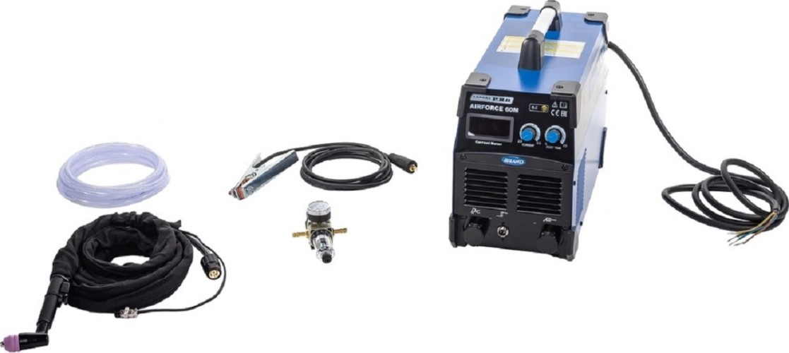 Инверторный трехфазный аппарат AuroraPRO AIRFORCE 60M предназначен для плазменной резки любых токопроводящих материалов: мягкие стали, нержавеющие стали, оцинкованные стали, алюминий, медь и различные сплавы. Модель получила настраиваемое время продувки плазменной горелки и усовершенствованную систему поджига дуги высокочастотным осциллятором без пилотной дуги. Работа с данным аппаратом отличается высоким качеством и высокой скоростью резки. Бесконтактный поджиг дуги с высокочастотным управлением упрощает работу и позволяет без перерывов резать сетку и поверхности с отверстиями. При режущем токе 60А, аппарат способен справляться с углеродистой сталью толщиной до 20мм. А при толщинах 15 мм, AIRFORCE 60М уверенно чувствует себя даже на продолжительных работах не теряя в качестве резки. К аппарату необходимо также подключить компрессор для подачи сжатого воздуха.