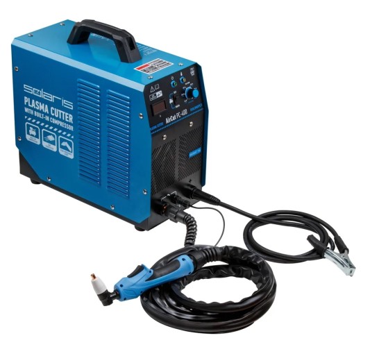 Плазморез SOLARIS AirCut PC-400 имеет встроенный воздушный компрессор, поэтому не требует подключения к внешнему компрессору.