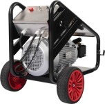 Мойка высокого давления без нагрева воды Bennett DK3015 относится к профессиональному классу автомоечного оборудования. Произведена в Китае. Автомойки с электроприводом - самый популярный класс профессиональных АВД. Подходят для решения широкого спектра задач автомобильного, промышленного, коммунального клининга: легковые и грузовые автомойки, очистка фасадов, мойка производственных цехов и оборудования, мойка в сельском хозяйстве и животноводничестве, каналопромывка, гидропескоструйные работы и прочее. Допускается эксплуатация оборудования в режиме 24/7. Привод насоса высокого давления - трехфазный (380 В), асинхронный, индукционный электромотор, мощностью 10 кВт. С данным силовым агрегатом аппарат способен подавать воду под давлением 300 бар и потоком воды 15 л/мин. Конструктивное исполнение мойки - мобильная на колесах. Наиболее целесообразно выбирать аппарат этой конструкции, если в процессе эксплуатации его необходимо перемещать по объекту. Колеса и удобная ручка существенно облегчают эту задачу. Аппарат поставляется в комплекте с шлангом высокого давления, пистолетом, изогнутым копьем, фильтром тонкой очистки, комплектом форсунок высокого давления.