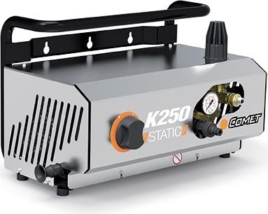 Аппарат высокого давления без нагрева воды. Конфигурация для крепления к стене и стационарного использования. Прочный стальной корпус. Всасывание моющего средства при низком давлении с регулированием. Простота техобслуживания, сняв картер. Манометр давления. 4-х полюсный двигатель (1400 оборотов/мин.), с усиленными характеристиками, защищенный окрашиванием. Профессиональный интегрированный регулировочный клапан давления. TotalStop. Ротационный переключатель. Термозащита двигателя.