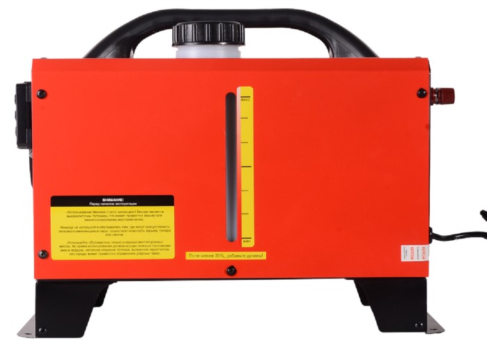 Агрегат оборудован мощным двигателем, способным выдавать тепловую мощность до 10 кВт, что достаточно для полноценного обогрева значительных объемов. Конструкция предусматривает минимальный расход топлива — всего около 0,53 кг/ч, а объем встроенного топливного бака в 5 л позволяет устройству стабильно функционировать до 9,5 ч подряд, существенно увеличивая эффективность работы.