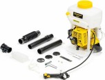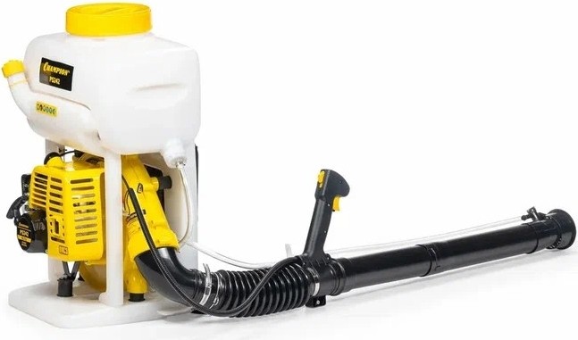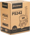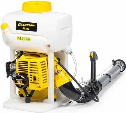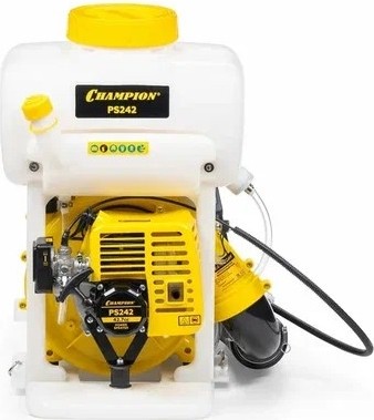 Опрыскиватель Champion PS242 - используется для распыления на растения средств от паразитов, распределения удобрений и подкормки и других работ, связанных с распылением жидких химикатов и удобрений. Садовый опрыскиватель Champion PS242 оснащен надежным 2-тактным бензиновым двигателем мощностью 1.7 л.с. Двигатель заправляется топливной смесью, которая состоит из бензина марки не ниже АИ-92 и масла для 2-тактных двигателей в соотношении 50:1. Топливный бак емкостью 1.8 л выполнен из прозрачного материала, поэтому контролировать уровень топлива очень легко. Двигатель обеспечивает широкий, до 15 метров радиус распыления, что позволяет за короткий промежуток времени обработать большую территорию. Скорость распыления оставляет 182 л/час. Champion PS242 оборудован вместительным баком для жидкости, объем которого составляет 14 л. Благодаря широкой горловине бак легко заполнить жидкостью. Бензоопрыскиватель оборудован регулятором дозатора, с помощью которого осуществляется управление потоком распыляемой жидкости. Всего регулятор имеет четыре положения. Бензиновый распылитель Чемпион PS242 укомплектован специальным шлангом и насадками, которые позволяют производить обработку растений наиболее подходящим способом.