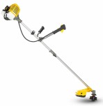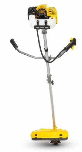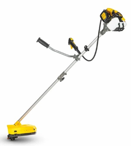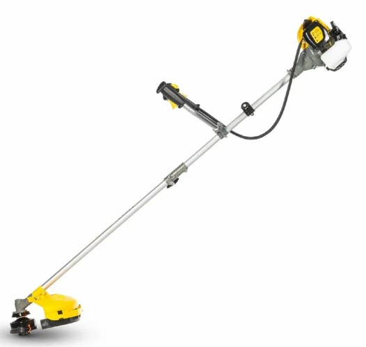 Для упрощения начала работы модель оснащена системой легкого старта. Используя для срезания леску, можно обработать полосу шириной до 415 мм. В тоже время ножом можно обработать лишь полосу в 255 мм. Штанга имеет прямое строение. При необходимости транспортировки и хранения ее можно разобрать. Рукоятка имеет У-образную форму. Топливный бак вмещает до 0,95 л. топлива. Этого вполне достаточно для продолжительной работы без необходимости дозаправки. Работает аппарат на бензине. Конструкцией не предусматривается травосборник, но это делает аппарат более мобильным и компактным. Высоту скашивания настроить нельзя. Эта функция полностью ложится на оператора, совершающего процесс обработки. Приемлемый уровень шума в 96 дБ дает возможность использовать прибор в жилой зоне. При этом для сохранения здоровья органа слуха производитель рекомендует использовать наушники и другие средства защиты.