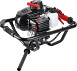 Бензиновый мотобур с двухтактным двигателем мощностью 3 л.с. (2,2 кВт) и передаточным числом редуктора 30 к 1, предназначен для бурения грунта и льда шнеком диаметром от 40 мм до 200 мм на глубину до 1,8 метров. При эксплуатации мотобура необходимо правильно выбрать тип шнека (для грунта, для мерзлого грунта или для льда). Шнеки для разных типов грунта отличаются режущей головкой.