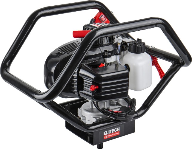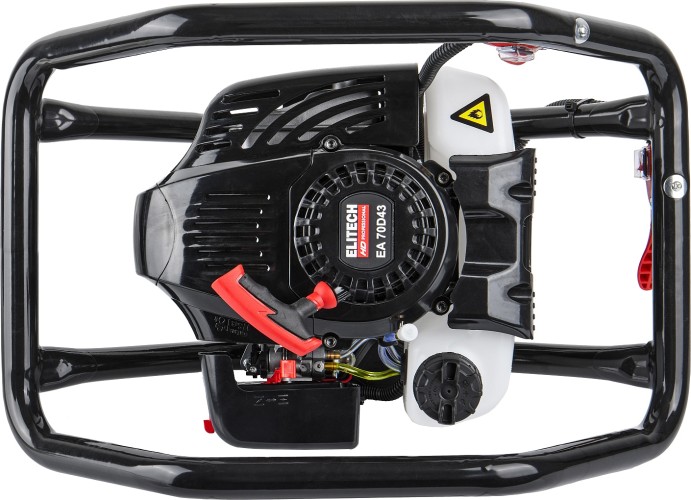 Бензиновый мотобур ELITECH EA 70D43 с двухтактным двигателем мощностью 3,3 л.с. (2,5 кВт) и передаточным числом редуктора 43 к 1, предназначен для бурения грунта и льда шнеком диаметром от 40 мм до 300 мм на глубину до 1,8 метров. При эксплуатации мотобура необходимо правильно выбрать тип шнека (для грунта, для мерзлого грунта или для льда). Шнеки для разных типов грунта отличаются режущей головкой.