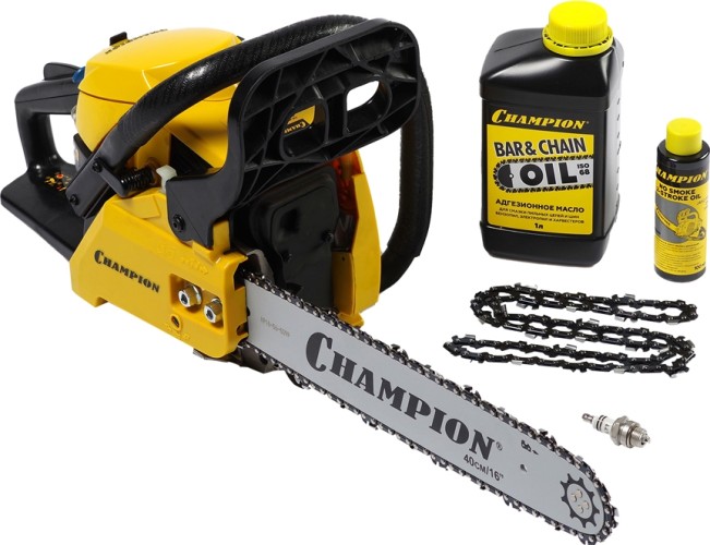 Бензопила CHAMPION A237-16 PROMO + подарочный набор используется при валке деревьев, обрезке ветвей, для распиливания заготовок из древесины.