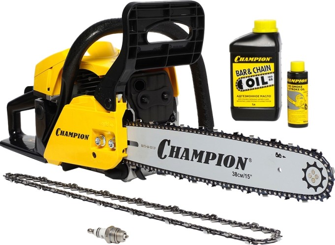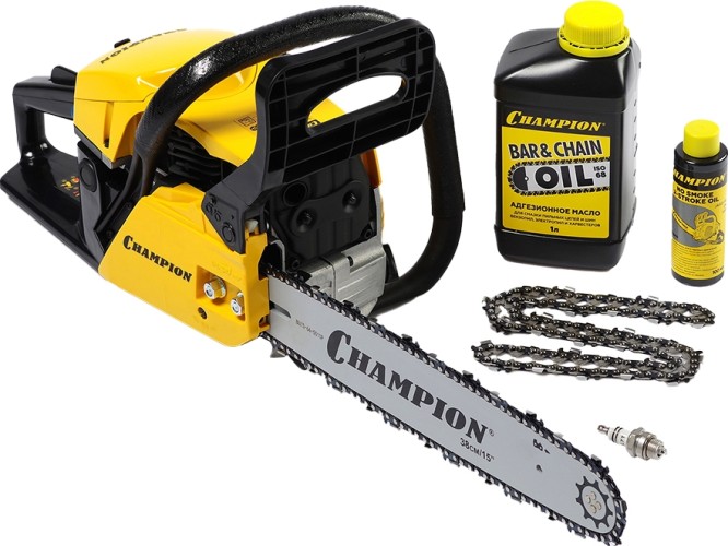 Бензопила CHAMPION A246-15 PROMO + подарочный набор используется при валке деревьев, обрезке ветвей, для распиливания заготовок из древесины.