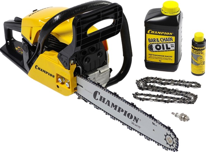 Бензопила CHAMPION A251-15 PROMO + подарочный набор используется при валке деревьев, обрезке ветвей, для распиливания заготовок из древесины.