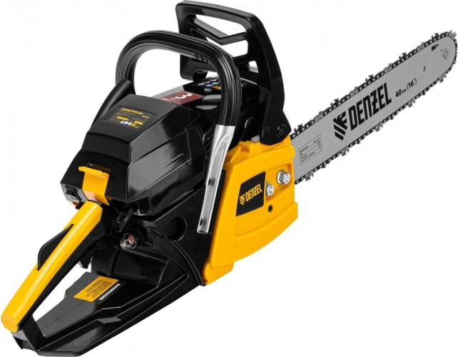 Пила цепная бензиновая Denzel DGS-4516 95230 - бытовой инструмент для заготовки дров, обрезки ветвей и сучьев в саду, распила древесины твердых и мягких пород. Пила выдерживает интенсивные нагрузки, используется во время строительных и ремонтных работ, будет полезна на дачном участке.