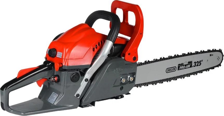 Цепная бензиновая пила подойдет для распиловки бревен, досок, дров и пиломатериалов. Бензопила EVOline CSG 58-18 ES подойдет для дачи. загородного дома в качестве универсального или строительного инструмента.