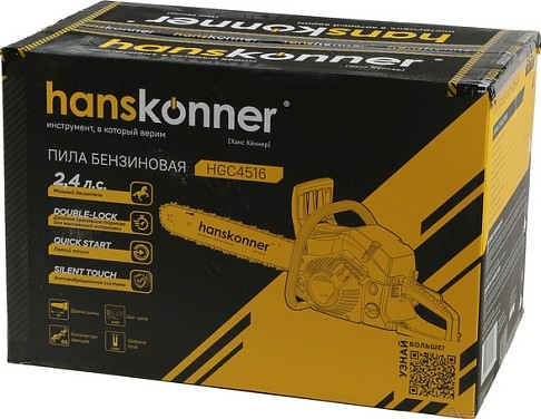 Бензопила Hanskonner HGC4516 идеально подходит для интенсивных работ по деревообработке благодаря своей высокой производительности и надежности.