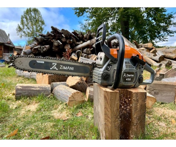 Бензопила ZimAni 450 - Универсальная пила, модель с характеристиками профессионального уровня. Узкий корпус. Пила универсальна, может использоваться как для домашней заготовки дров и обработки древесины, так и валки деревьев. Даже для частного использования ZimAni производит бензопилы с оснащением профессиональных моделей. ZimAni 450 удовлетворит потребности притязательных пользователей, которым не хватает мощности бюджетных бытовых пил. Производитель ZimAni неизменно ставит качество и долговечность выпускаемых инструментов на первое место, поэтому выбирая продукцию ZimAni вы можете рассчитывать на долговечную работу.