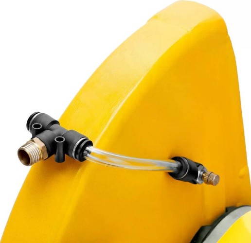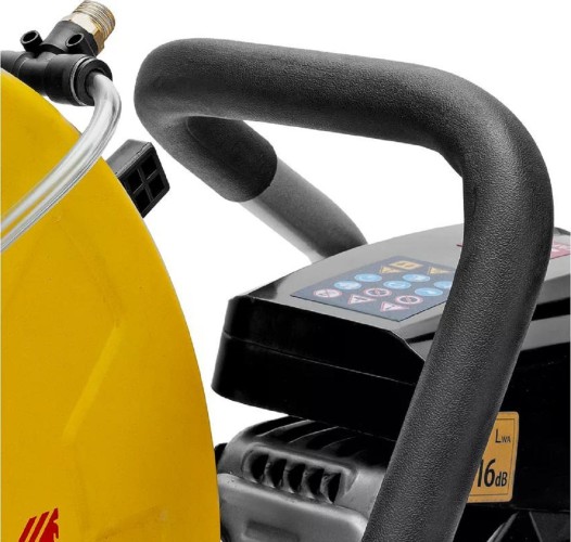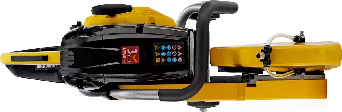 Бензорез оснащен универсальным штуцером для подачи воды. Использование водяного охлаждения позволяет уменьшить количество образующейся пыли и снизить нагрузку на двигатель.