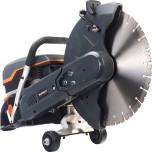 Бензорез может делать поперечные, разрывные и погружные надрезы. С помощью реверсивного режущего узла можно проводить резку вплотную к стене или полу, ограничение задается толщиной щитка диска. Оснащается специальным кожухом, который закрывает диск и защищает оператора.