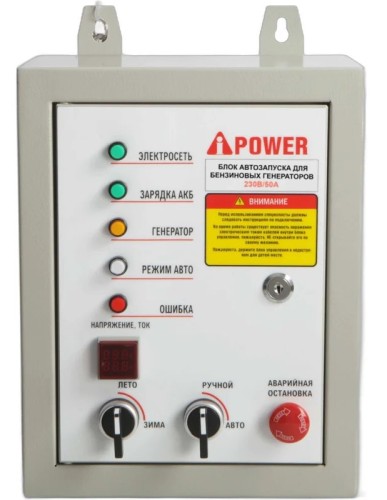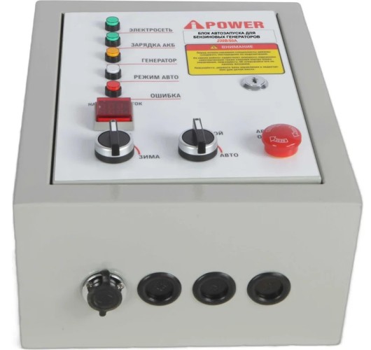 Это устройство сделает ваш генератор A-iPower автономным источником резервного электроснабжения. Блок автозапуска самостоятельно запустит генератор и автоматически заглушит его, когда в центральной электросети снова появится напряжение.