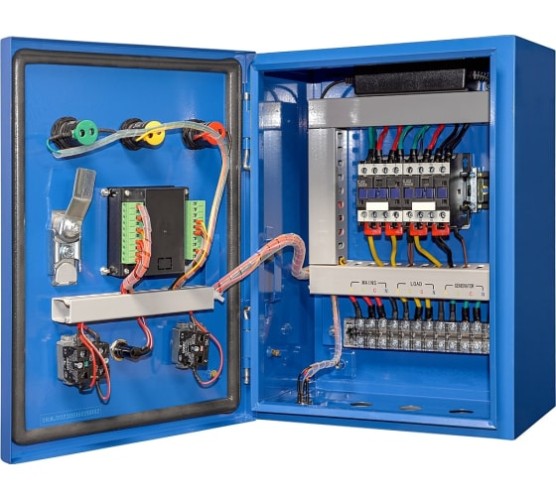 Блок АВР для дизельного генератора от 5 до 8 кВт/400 включает в себя систему автозапуска (автоматического ввода резервного электропитания). При появлении основного источника электропитания происходит отключение электростанции. Блок автоматического управления для контроля наличия напряжения в сети.