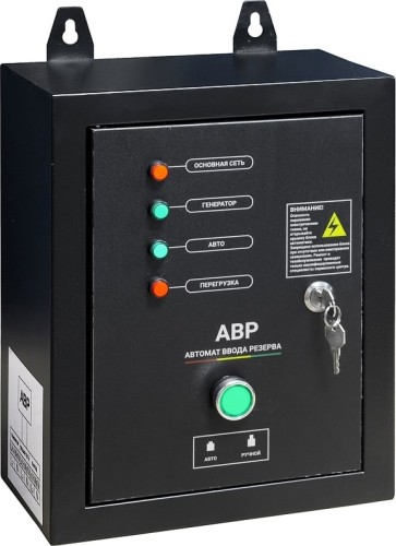 Блок АВР для дизельного генератора от 6 до 9 кВт / 230/400 включает в себя систему автозапуска (автоматического ввода резервного электропитания). При появлении основного источника электропитания происходит отключение электростанции. Блок автоматического управления для контроля наличия напряжения в сети.