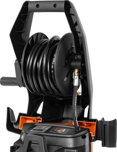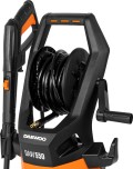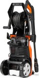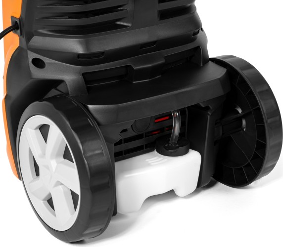 Мойка имеет профессионалый пистолет с соплом из высокопрочной стали, устойчивой к перепадам давления и температуры. Помпа выполнена из алюминия для отвода избыточного тепла от двигателя. Имеет грязевую фрезу и встроенный генератор пены.