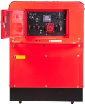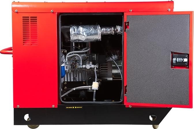 ушного охлаждения максимальной мощностью 14 кВт. Надежный двухцилиндровый двигатель и топливный бак 50 л позволяют работать без дозаправки до 12 часов. Шумозащитный кожух снижает уровень шума до 69 дБ (7 м) , что особенно важно для работы в качестве источника бесперебойного питания в загородном доме, коттедже или офисном здании.