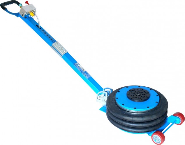 Пневматический домкрат 3-секционный с ручкой T08105A AE&T 5т используется для подъема автомобиля с целью ремонта или обслуживания (например, замены колеса). Сжатый воздух можно подавать как напрямую с компрессора, так и по магистрали, которая имеется в крупных автосервисах. Домкрат удобен в хранении благодаря малым габаритам и весу.