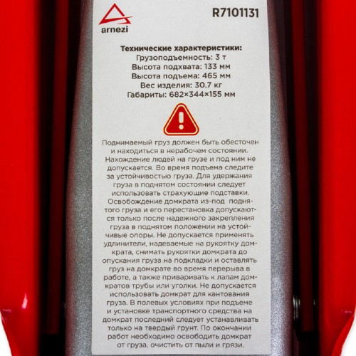 Домкрат подкатной ARNEZI R7101131 гидравлический 3т 133-465 мм двухпоршневой