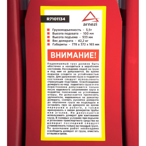 Домкрат подкатной ARNEZI R7101134 гидрав. 3,5т 100-533мм двухпорш. низкопрофильный