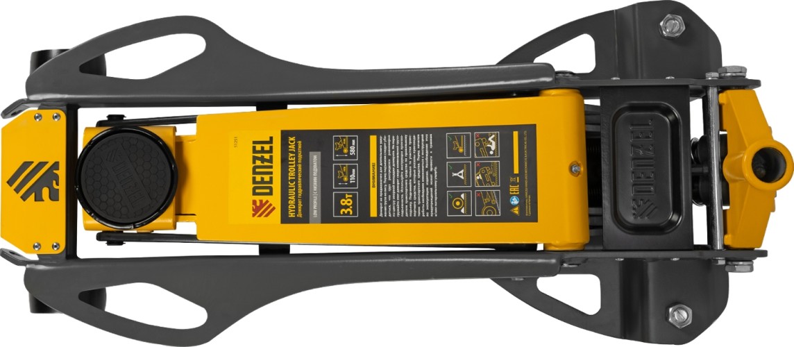 Домкрат подкатной DENZEL 51251 гидравлический 3,8 т, 110-580 мм, низкий подхват. Подходит для транспортных средство класса кроссоверов и внедорожников. Благодаря системе быстрого подъема QUICK LIFT для достижения предельной высоты достаточно 6 качков рукоятки. Домкрат подходит для использования на станциях техобслуживания и шиномонтажа.