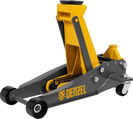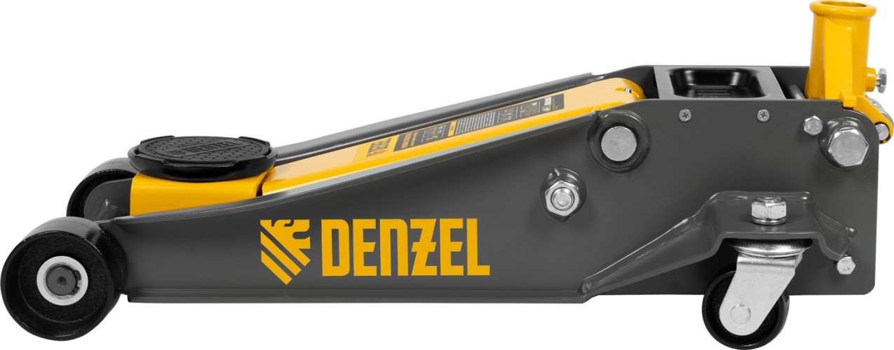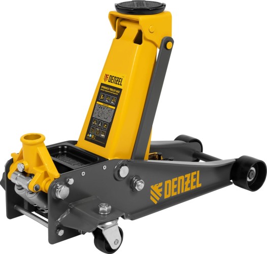 Домкрат подкатной DENZEL 51260 гидравлический 3 т, 125-470 мм, быстрый подъем. В гидравлическом блоке предусмотрено 2 насоса (система быстрого подъема QUICK LIFT), благодаря чему для достижения предельной высоты достаточно 6 качков рукоятки. Домкрат подходит для использования на станциях профессионального техобслуживания и шиномонтажа, а также для личного использования.