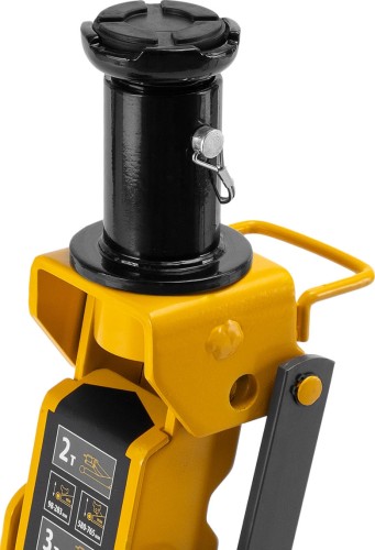 В гидравлическом блоке предусмотрено 2 насоса (система быстрого подъема QUICK LIFT), благодаря чему для достижения предельной высоты достаточно 6 качков рукоятки. Домкрат подходит для использования на станциях техобслуживания и шиномонтажа.