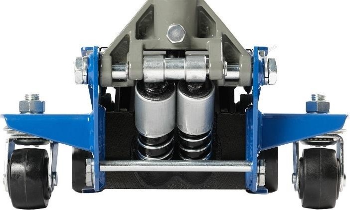 Домкрат оснащен прочной резиновой насадкой, которая обеспечивает дополнительную защиту днища автомобиля от повреждений и проскальзывания при работе. Поворотные колеса и удлиненная рукоятка делают перемещение и позиционирование домкрата под автомобилем быстрым и удобным, особенно на напольных покрытиях СТО.