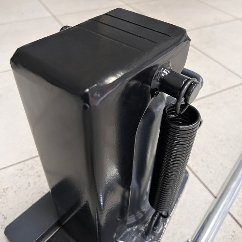 Конструктивной особенностью данного подъёмного приспособления, является захват груза практический от уровня пола. Домкрат нашёл своё применение в области монтажа станков и оборудования имеющее минимальный просвет от нулевой отметки. Внимание: при работе с домкратом рекомендуется использовать страховочные подставки для надежной фиксации груза, а так же стояночные башмаки.