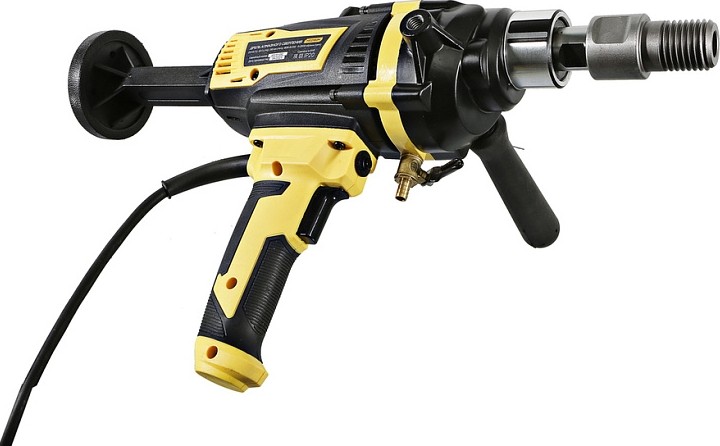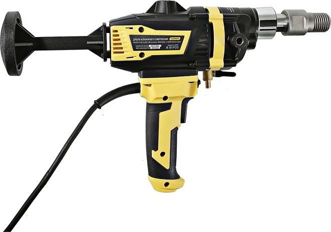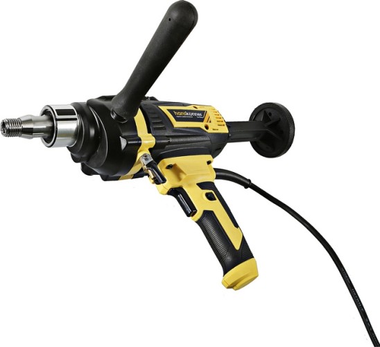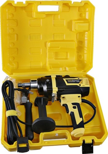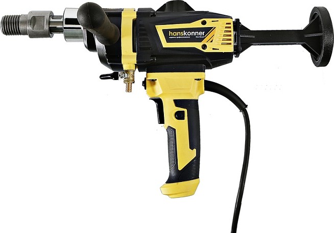 Дрель алмазного сверления Hanskonner HID2180M — компактный и мощный электроинструмент с надежной конструкцией для сверления алмазными коронками отверстий в таких материалах: бетон, железобетон, искусственный и натуральный камень, кирпич. Подключив инструмент к водопроводному крану можно сократить запыленность рабочей зоны, а также износ алмазных коронок и дрели. Данная модель оснащена предохранительной муфтой, срабатывающей при заклинивании коронки, и термозащитой работающей при других видах перегруженности.