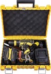 Быстросъемный патрон 13 мм с функцией ClickLock и шпиндель с автоматической блокировкой позволяют надёжно зажимать различные виды насадок. Данная модель является частью системы 1BatterySystem и совместима со всей линейкой аккумуляторного инструмента. Два Li-Ion аккумулятора на 2 Ah с до 3000 зарядок и собственной системой защиты от перегрузки, перегрева и глубокого разряда обеспечат полную непрерывность в работе. Функция быстрой зарядки зарядного устройства полностью восстановит работоспособность аккумулятора всего за 60 минут или за 35 минут до 80%. Встроенная светодиодная подсветка с применением блока коллиматорных линз эффективно освещает рабочую область направленным симметричным лучом. Эргономичный корпус из ударопрочного нейлона с резиновыми антивибрационными вставками и концентрация основного веса по его оси позволяет работать без напряжения пальцев и снижает усталость.