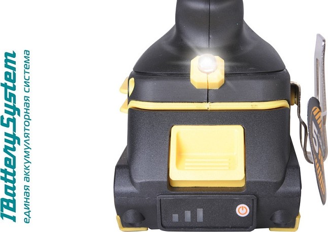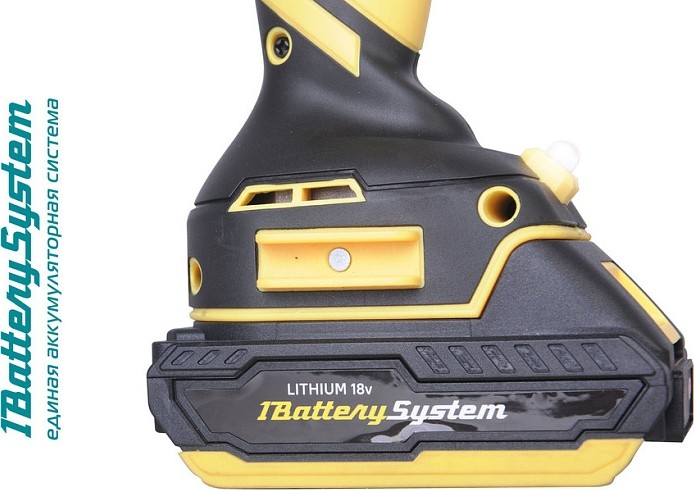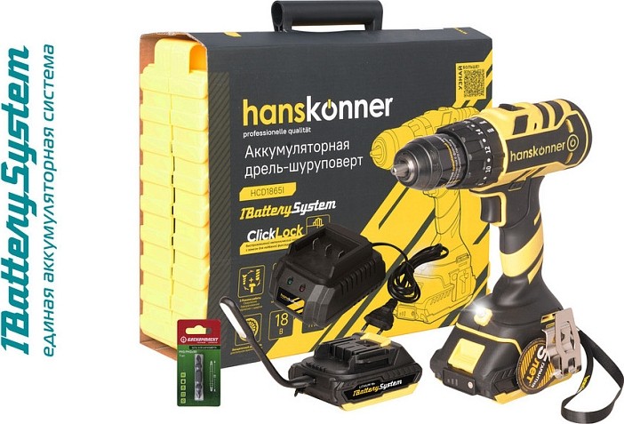 Одномуфтовый металлический 13 мм патрон с трещеткой ClickLock гарантирует надежную фиксацию оснастки в широком диапазоне от 1,5 до 13 мм, позволяет максимально быстро производить ее замену. 20 ступеней крутящего момента и режим сверления позволяют устанавливать любой крепеж без его повреждения и вдавливания в материал. Уверенно работать с любым материалом от древесины до металлопроката позволяет высокий крутящий момент 65 Нм. Данная модель является частью системы 1BatterySystem и совместима со всей линейкой аккумуляторного инструмента. Два Li-Ion аккумулятора на 2 Ah с до 3000 зарядок и собственной системой защиты от перегрузки, перегрева и глубокого разряда обеспечат полную непрерывность в работе. Функция быстрой зарядки зарядного устройства полностью восстановит работоспособность аккумулятора всего за 60 минут или за 35 минут до 80%. Встроенная светодиодная подсветка с применением блока коллиматорных линз эффективно освещает рабочую область направленным симметричным лучом. Эргономичный корпус из ударопрочного нейлона с резиновыми антивибрационными вставками и концентрация основного веса по его оси позволяет работать без напряжения пальцев и снижает усталость.