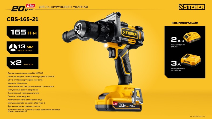 Бесщеточная дрель-шуруповерт STEHER системы LMS с увеличенным крутящим моментом предназначена для быстрого заворачивания саморезов до 8 мм диаметром и сверления отверстий до 30 мм в дереве. Длительная работа от одного заряда обеспечивается эффективным двигателем BRUSHLESS. Расширенная функциональность за счет ударного режима работы.