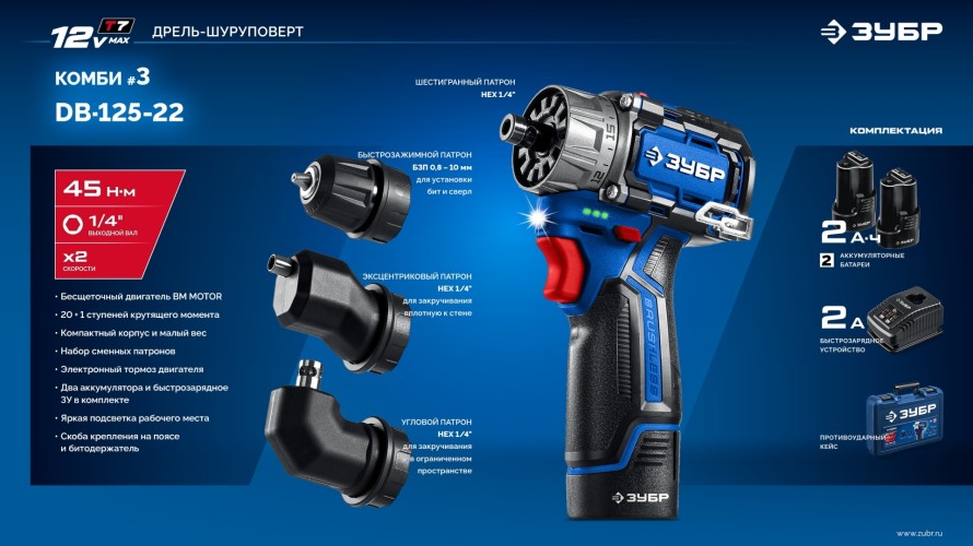 Высокотехнологичный шуруповерт профессионального уровня с передовым BRUSHLESS двигателем. Удобный инструмент с набором сменных патронов, крутящим моментом 45 Нм, компактной конструкцией и отличной эргономикой для сборки мебели, ремонта оборудования, комплектации силовых шкафов и т.д. Комплектация с двумя аккумуляторами позволяет работать практически без остановки.