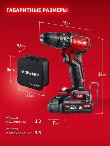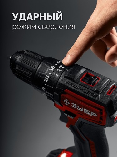 ЗУБР 20 В, 45 Н·м, 2 АКБ LMS (2 А·ч), бесщеточная ударная дрель-шуруповерт, сумка ДБУ-45-22 - инструмент из единой аккумуляторной системы LMS для 500+ инструментов.