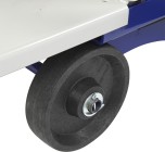 Для перемещения дровокола по участку имеются 2 колеса в его основании.