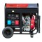 Дизельный генератор с равной максимальной мощностью в однофазном и трехфазном режимах работы. Лучший выбор для работ с различным высоконагруженным профессиональным оборудованием. Специально спроектированный альтернатор двигателя позволяет снять равную мощность с генератора как в однофазном, так и в трехфазном режиме работы. Выбор режима осуществляется переключателем на передней панели. Топливный бак 12,5 л обеспечивает непрерывную работу без дозаправки в течение 10 часов при 75% нагрузке. Электростартер с бортовым аккумулятором позволяет быстро запустить дизельный двигатель. Колеса и ручки в комплекте гарантируют удобную транспортировку.