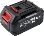 Входит в аккумуляторную платформу ELP (Elitech Lithium Platform), которая обеспечивает снижение нагрева и увеличение жизненного цикла аккумуляторов, принудительное охлаждение и контроль всех параметров батареи во время зарядки.