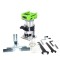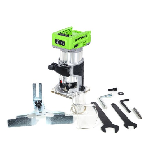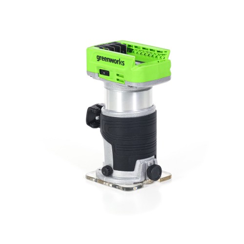 Модель G24RO оснащена цанговым патроном 0,6 см (1/4”) и 5-ступенчатой регулировкой, которая позволяет выполнять разные задачи. Фрезер имеет функцию поддержания оборотов под нагрузкой для удобного пользования и плавный пуск для избежания толчков при запуске. Направляющая устройства задает расстояние от кромки заготовки до центра фрезы. С ее помощью можно фрезеровать от центра окружности до центра фрезы с расстоянием от 70 до 221 мм.