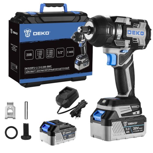 Гайковерт аккумуляторный бесщеточный DEKO DKIS20FU-Li предназначен для закручивания/ослабления болтов и гаек, сборки деревянных конструкций, сантехнических и общестроительных работ. Этот гайковёрт имеет 3 режима/скорости для затягивания болтов и 2 режима для ослабления болтов. Каждый режим означает разные скорости и мощности. Пользователь выбирает подходящий режим исходя из конкретных задач. Благодаря высокому крутящему моменту можно выполнять тяжелые работы. Не нуждается в наличии электросети за счет работы от литий-ионного аккумулятора. Бесщеточный двигатель экономно расходует заряд батареи, имеет большой КПД и отличается более долгим сроком службы.