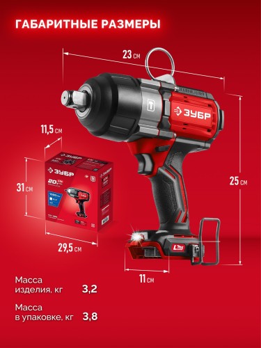 Гайковерт аккумуляторный ЗУБР ГБУ-1000 20 В, 1000 Н·м, без АКБ (LMS), бесщеточный ударный