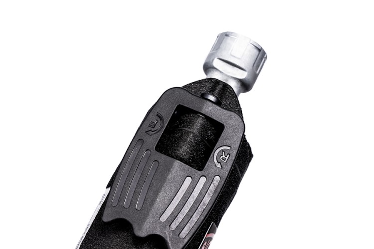 Уникальной особенностью, обеспечивающей его компактность и легкость, является отсутствие рукоятки – инструмент во время работы требуется удерживать прямо за корпус. Кроме того, его штуцер прикреплен к корпусу с помощью шарнира, что предохраняет пневмошланг от возможных изломов и пережатия, а реверсивный переключатель-«бабочка» располагается на корпусе так, чтобы его можно было легко сдвигать в нужную сторону большим пальцем прямо в процессе работы.
