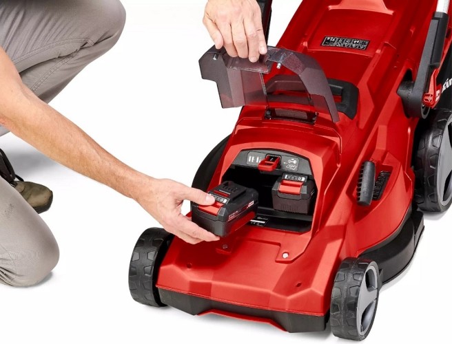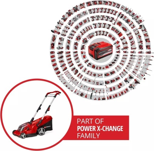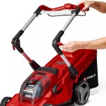 Аккумуляторная газонокосилка Einhell RASARRO 36/40 (2x4,0 Ач) станет надежным и мощным помощником в уходе за газоном в вашем саду. Легкая и компактная газонокосилка весом 15 кг с шириной скашивания 40 см работает без проводов и рекомендуется для газонов площадью до 500 м². Аккумуляторная газонокосилка входит в семейство Einhell Power X-Change, в котором аккумуляторы, зарядные устройства и системы можно гибко комбинировать. Газонокосилка работает от сдвоенного аккумулятора на 36 В, который сочетает в себе мощность двух аккумуляторов на 18 В для длительного использования без надоедливых проводов. Шестиступенчатая центральная регулировка высоты среза позволяет легко и индивидуально настраивать высоту среза от 25 до 75 мм. Газонокосилка RASARRO 36/40 оснащена регулируемой по высоте и складной направляющей. Это позволяет идеально адаптировать ее к любой высоте и компактно хранить. Аккумуляторная газонокосилка с приподнятыми задними колёсами, что облегчает работу на пересечённой местности. Большие колёса также защищают газон. Большой травосборник вмещает до 50 литров скошенной травы и оснащён индикатором уровня заполнения. Прочный корпус изготовлен из высококачественного ударопрочного пластика, а встроенная насадка для газона обеспечивает особенно равномерное скашивание и облегчает работу у края газона. Удобная ручка для переноски упрощает транспортировку. Аккумуляторная газонокосилка RASARRO 36/40 (2x4,0 Ач) поставляется с двумя аккумуляторами Power X-Change емкостью 4,0 Ач и двойным зарядным устройством для одновременной зарядки двух аккумуляторов. Газонокосилка рекомендуется для обработки газонов площадью до 500 м².