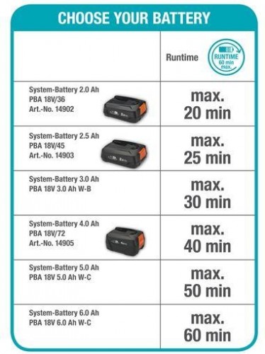 HandyMower 22 / 18V P4A поставляется без аккумулятора и зарядного устройства. Она совместима со всеми батареями 18 В от POWER FOR ALLIANCE, одного из крупнейших межбрендовых аккумуляторных альянсов ведущих производителей. Эти батареи можно использовать для множества устройств в доме и в саду. Так вы сэкономите деньги и сохраните гибкость! Вы бы предпочли купить продукт с аккумулятором в комплекте? Не проблема - тогда готовый набор - то, что вам нужно.