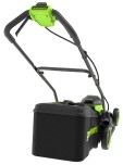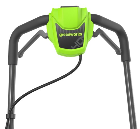 Дека из ударопрочного пластика, устойчивого к попаданию посторонних предметов, таких как небольшие камни. Ручка газонокосилки складная, что удобно при хранении.