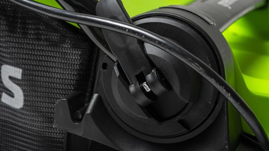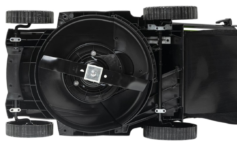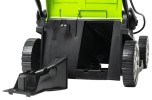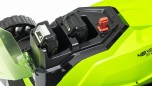 Газонокосилка с шириной деки 41 см отлично подойдет для ухода за газоном небольшой и средней площади. У модели предусмотрены 3 режима кошения: сбор травы в травосборник объемом 50 л, задний выброс травы и кошение в режиме мульчирования, что позволяет использовать скошенную траву в качестве компоста для газона. Газонокосилка имеет усовершенствованную систему и питается от двух аккумуляторов 24V, что дает выходное напряжение 48V. Благодаря этому скорость холостого хода составляет 3 600 об/мин. Ширина среза — 41 см, вес устройства без аккумуляторов всего 18 кг. Высоту среза можно регулировать от 25 до 80 мм. Все это позволяет легко и быстро обрабатывать небольшие территории. Для надежности корпус газонокосилки выполнен из специального «мягкого» армированного АВС-пластика, который не трескается при попадании в него небольших камней. Для защиты от случайного включения предусмотрены специальный ключ безопасности и кнопка-предохранитель. Ручка газонокосилки складывается, что обеспечивает удобство транспортировки и хранения.